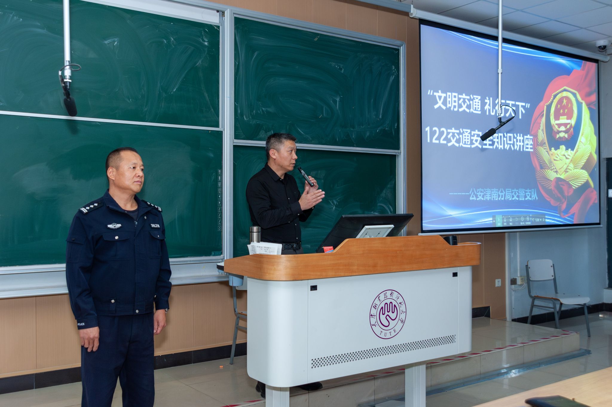 石警民行使接通变乱案例瞅频、图片战统计数据,联合校园周边接通处境取典范变乱案例,以案道法,用浅显易懂的谈话诠释了接通平安规矩。道座中,他核心分析了电动自止车背规骑止、灵活车酒驾风险、年夜货车盲区战启门宰等罕见接透风险;仔细解读马道谦让划定规矩、电动自止车骑止防备标准、灵活车驾驭平安重点等真用学问。末了,他号召年夜家要盲目恪守接通准则,吐弃接通成规,宽守接通划定规矩,干