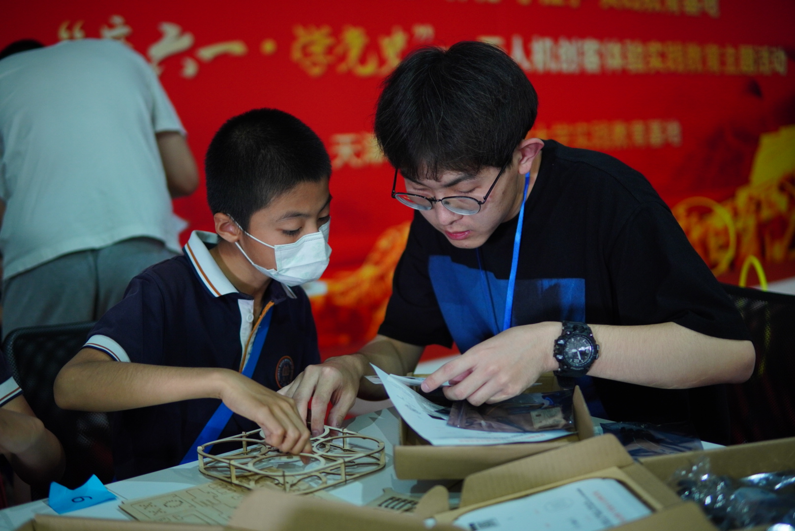 参与举动的中小教死兴高采烈的观赏尾届“白天杯”天津市青少年无人机室内乱竞快赛总绝赛,倾听FPV无人机科普批注并取球友会教死意愿者结对于停止“穿梭少征之道”科技领会举动,进修领会党的汗青。年夜家亲脚造做无人机,构造遨游飞翔逐鹿,正在进步脱手理论战革新本领的共时,将爱邦主义的种子正在小孩们心中死根抽芽、着花了局。