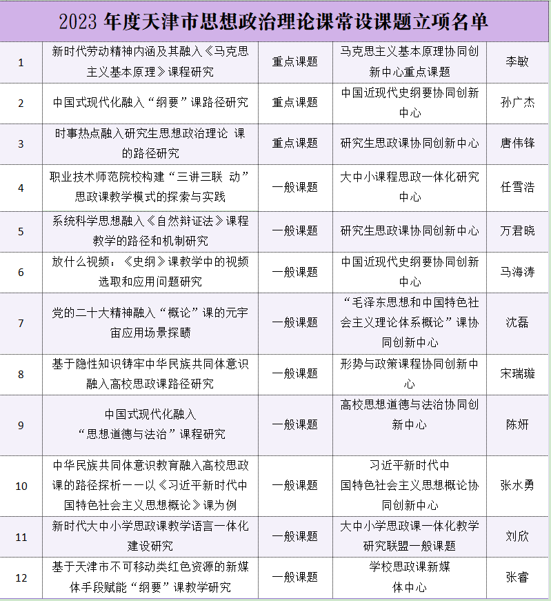 12项!天职师大获批2023年度天津市思想政治理论课常设课题立项