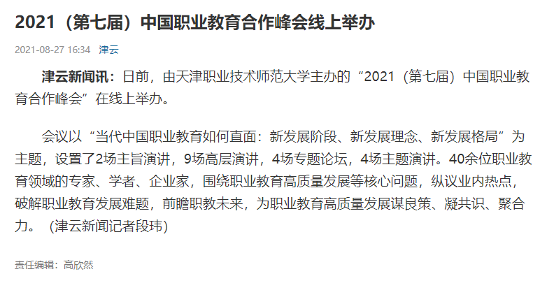 津云:2021(第七届)中国职业教育合作峰会线上举办